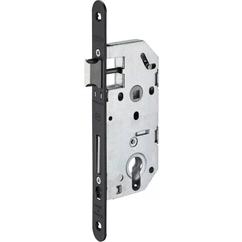 La cerradura empotrada Monomax garantiza un bloqueo efectivo que cumple con los requisitos de la norma NF nivel 2. una p de acero lo hace. Su mecanismo de dos vueltas y su recuperación de media vuelta por la llave permiten un uso ideal en puertas de oficinas o de entrada. Con una garantía de 10 años, esta cerradura Monomax se fabrica con un cuadrado de maneta de 7 mm que se puede adaptar a 8 mm bajo pedido. Este modelo está disponible con tapa redondeada en acero inoxidable, acero o acabado epoxi negro. Esta caja de cerradura de embutir se completa con cilindro de perfil. THIRARD - Cerradura empotrable para puerta de entrada monomax nf tt re negro Caja de acero estampado. T re acero. Reversible de aleación bi-paso de media vuelta sin desmontar la caja. Pne acero galvanizado. Gancho plano izquierdo de acero cincado. Mecanismo de 2 vueltas. Recordatorio de la 1/2 vuelta por la llave. Escuadra 7 mm, distancia entre ejes 70 mm. TERCERO